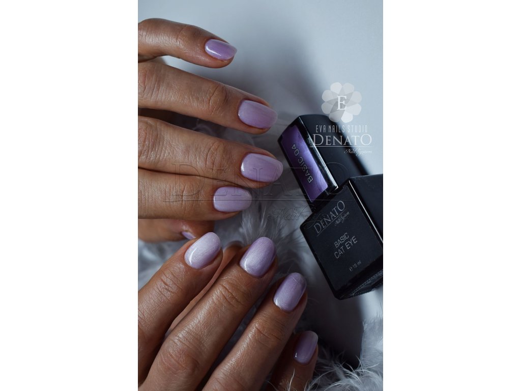 The CAT EYE Basic gel polish is part of the exclusive CAT EYE UV/LED Gel Polish collection, known for its high pigmentation and maximum adhesion. CAT EYE Basic 04 in a purple shade creates a striking cat-eye effect using a magnet, giving nails a modern, elegant, and highly sophisticated look.