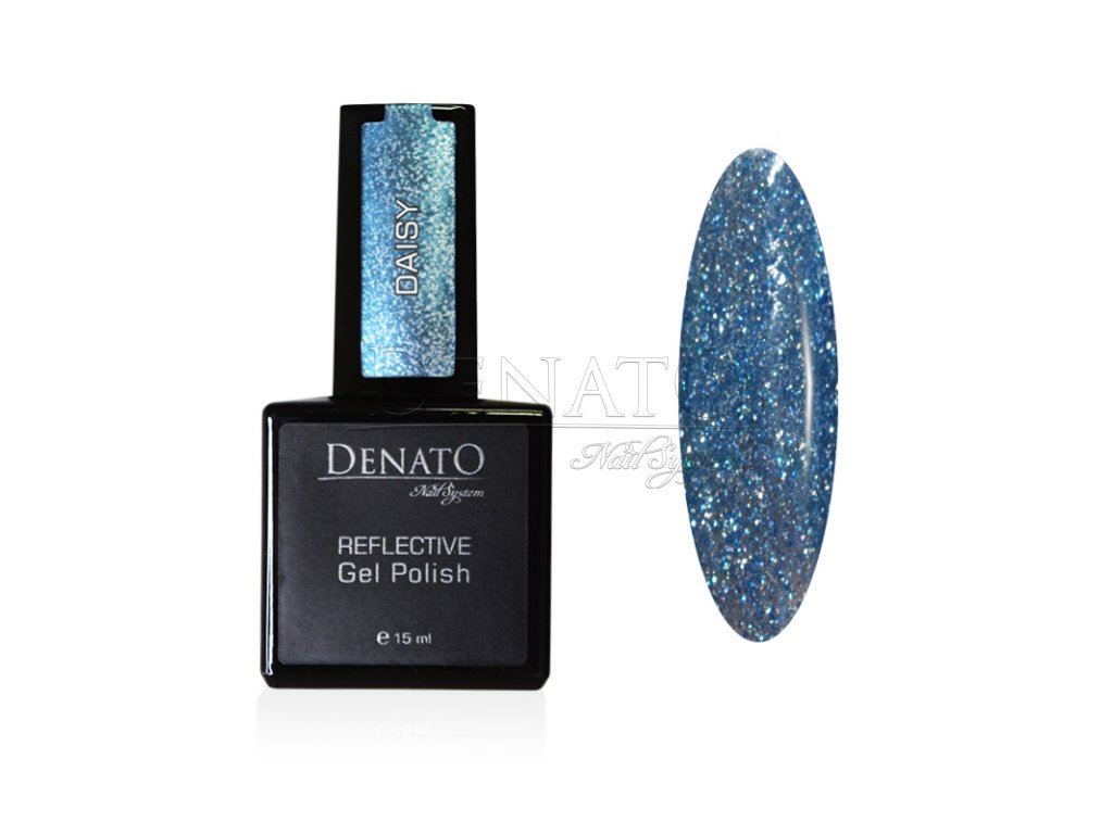 REFLECTIVE Gel polish DAISY okouzlí svěžím modrým odstínem připomínajícím čistou hladinu moře a bohatými reflexními třpytkami, které pod světlem vytvářejí výrazný zrcadlový efekt. V denním světle působí něžně a elegantně, zatímco pod lampou nebo bleskem se promění v intenzivně zářící, ledově kovový odstín — ideální pro všechny, kdo milují kombinaci ženskosti, elegance a luxusního třpytu.