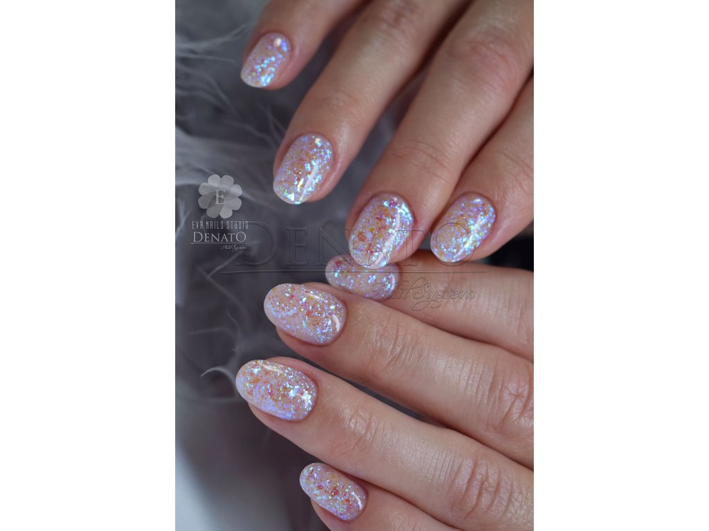 Stavební gel střední hustoty s odlehčenou texturou a jemným modrým glitter efektem. Vysoká pevnost, samovyrovnávací, pro všechny techniky modelace.