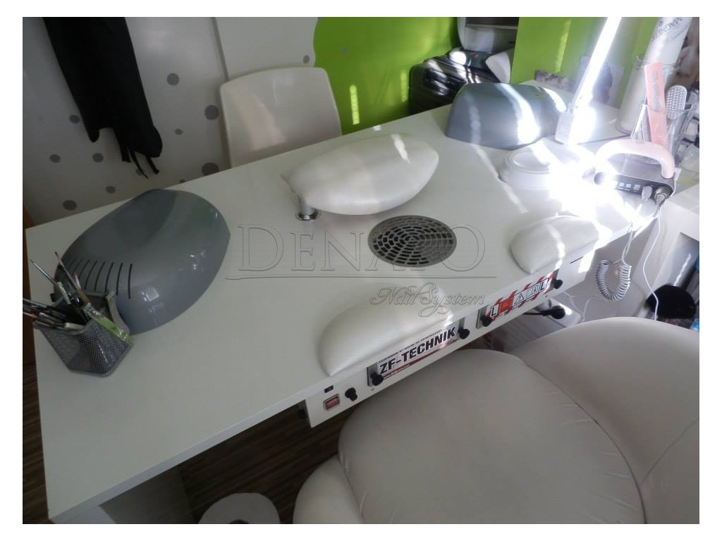 Các miếng đệm phổ quát dưới khuỷu tay được trang bị silicone từ phía dưới, đảm bảo độ bám dính vào bất kỳ vật liệu nào được sử dụng trên mặt bàn. Thảm được làm thủ công, chất liệu có thể giặt được rất cao được sử dụng cho chúng, được bảo quản tốt. Khuỷu tay của thợ nail ấm nhờ có miếng đệm, không áp sát vào mặt bàn. Vai và khuỷu tay của thợ nail được thả lỏng, tránh tình trạng quá tải và đau mỏi cơ cổ và lưng.